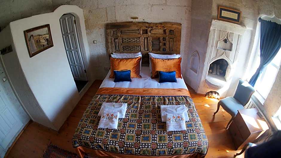 Featuring a unique décor, this stone room is located on the second floor and it opens directly to the courtyard. The room is tastefully decorated with an antique door as bed headboard and custom design furniture. It offers stunning views of Goreme and Guvercinlik Valley through the windows. There is also a fireplace, a sofa, an electric kettle with tea and coffee setup and a Nespresso machine in the room. The Ottoman-style bathroom comes with a toilet, shower and a hairdryer.